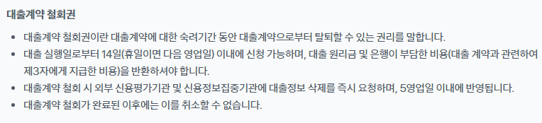 대출계약철회권은 대출 실행일로부터 14일 이내 취소하셔야 가능하니 유의하시길 바랍니다.