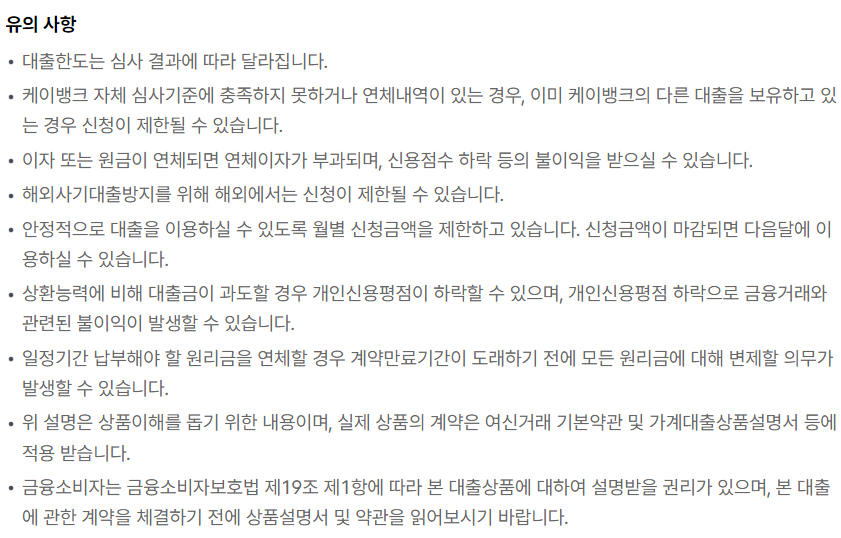 케이뱅크 마이너스통장 대출 기타사항 및 신청방법