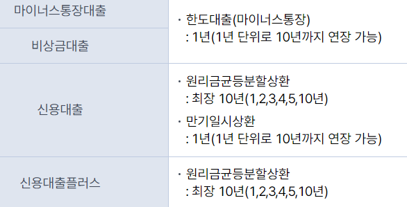 상환방법 및 대출기간은 아래 상품 종류에 따라 달라집니다.
