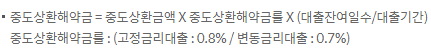 상환방법은 만기일시상환으로 매월 대출이자만 납부하다가 원금은 대출 만기일에 한번에 갚는 상환방식입니다.