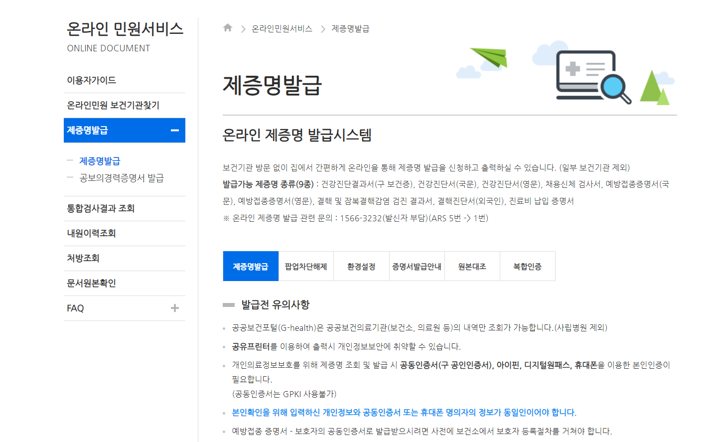 또한 온라인으로 보건증을 출력할 수 있습니다.