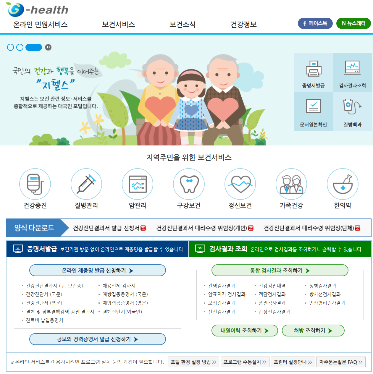 아래 링크를 클릭하시면 지헬스라는 온라인 민원서비스 홈페이지가 있습니다.