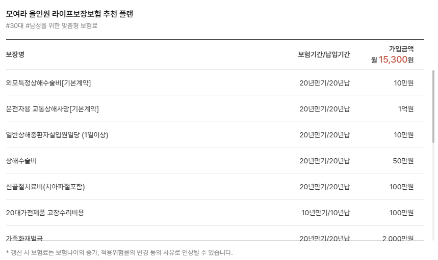 보험료는 사람마다 다르므로 직접 조회해보시면서 어떻게 무엇을 얼만큼 보장하는지 체크해보시기 바랍니다.