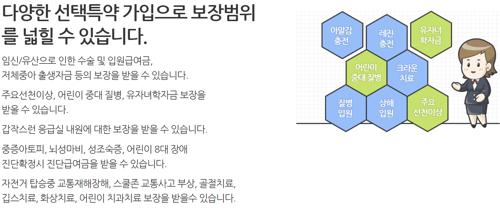 이 외에도 다양한 보장이 있으며 약관 및 보험료 계산 시 간편하게 확인할 수 있으니 알아보시기 바랍니다.