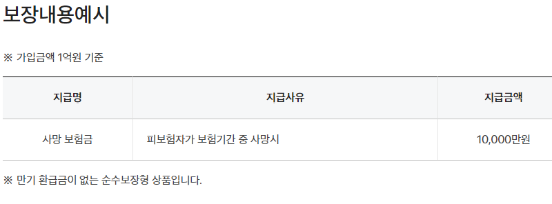 삼성생명 다이렉트 정기보험 보장내용