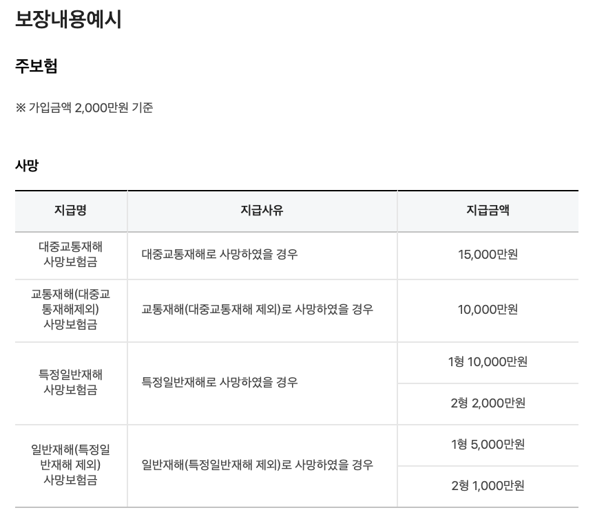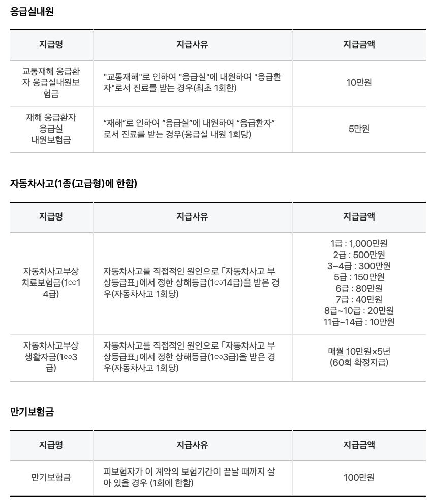 | 보장내용 | 보장금액 |