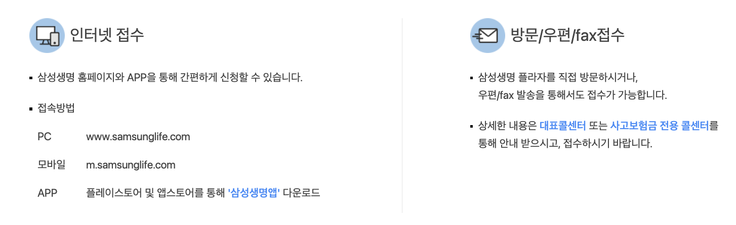 보험금 청구에 대한 자세한 사항은 삼성생명 고객센터에 문의하시기 바랍니다.