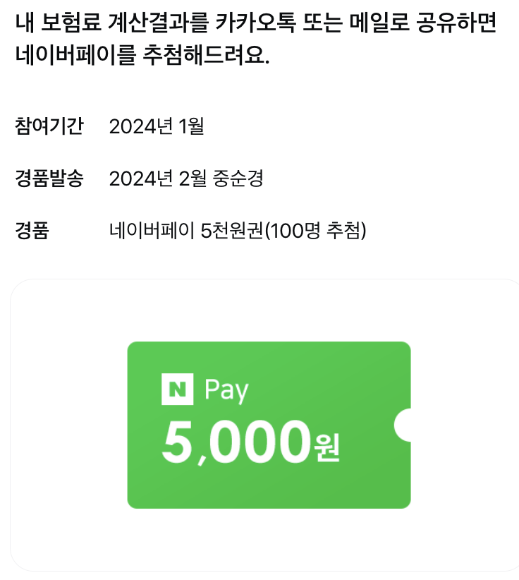 - 내 보험료 나에게 저장하고 네이버페이 받고! 카톡/이메일로 공유하기!