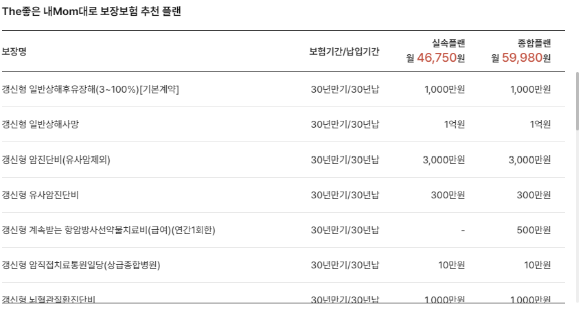 메리츠화재 The좋은 내Mom대로 보장보험 보험료 상품 정보 보장보험 가입 시 주의사항 정리
