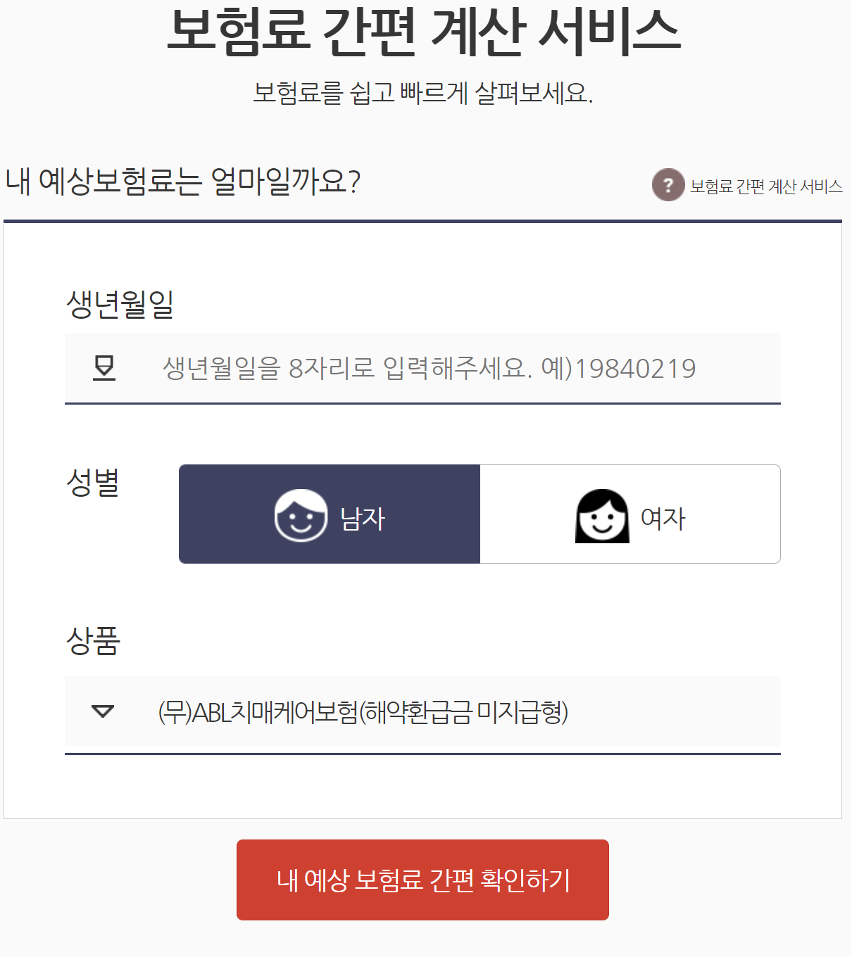 보험료 조회방법은 생년월일, 성별을 입력하면 바로 다음과 같이 보험료가 계산됩니다.
