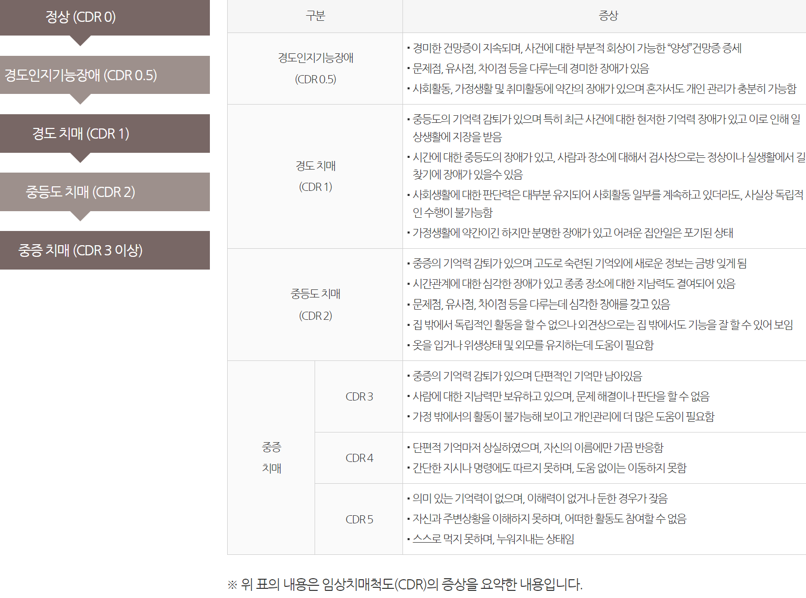 1. 치매진단 기준을 확인하세요.