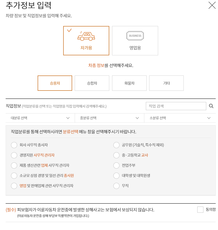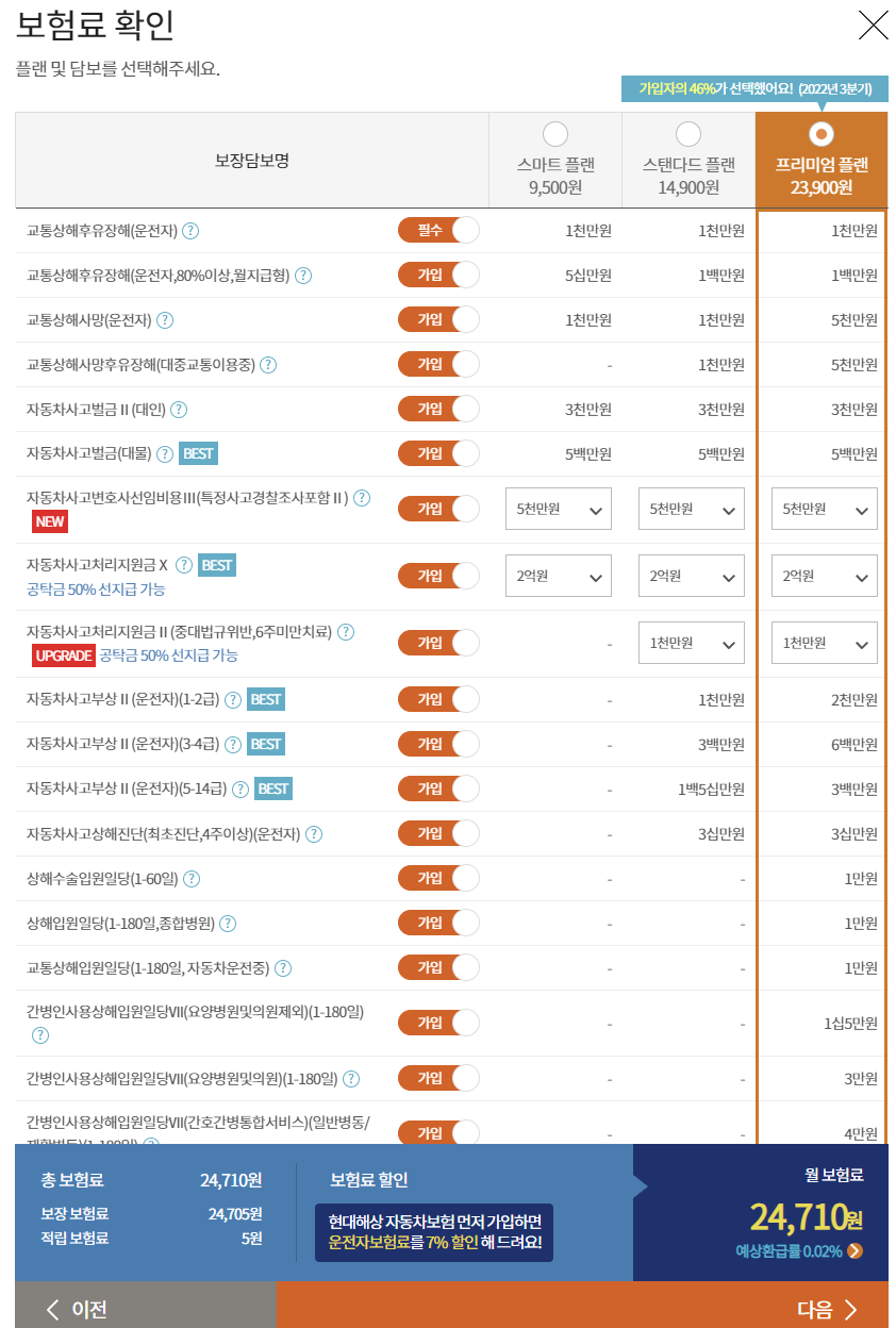 추가 정보 입력하면 아래와 같이 보험료가 계산됩니다.