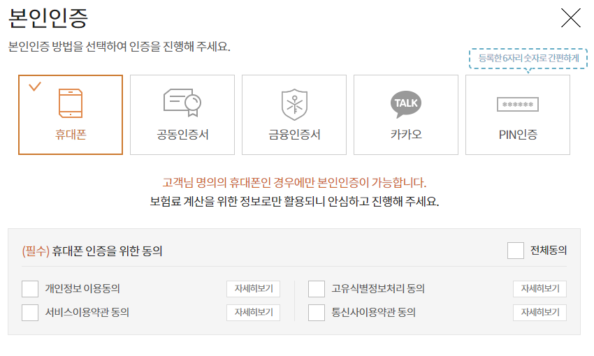 보험료 조회를 위한 필수 인증에 동의를 하시면 됩니다.