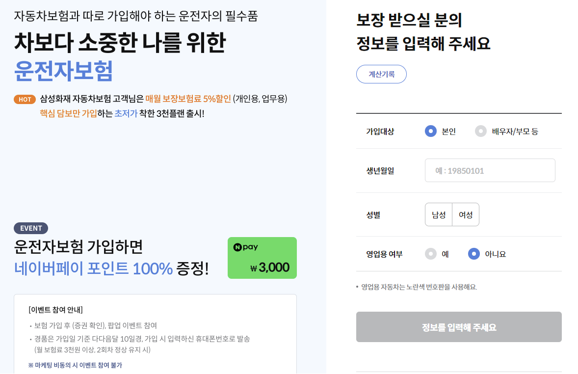 삼성화재 다이렉트 운전자보험 보장내용 특징 보험료 조회방법 및 운전자 보험 가입 주의사항