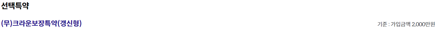 주계약 1,000만원, (무)크라운보장특약(갱신형) 2,000만원, 가입 후 91부터 보장