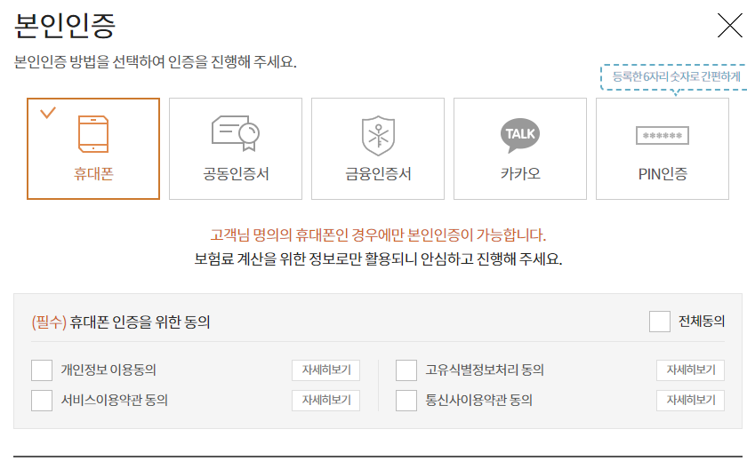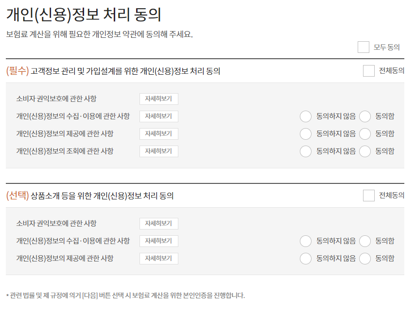 보험료 조회를 위한 개인 신용 정보에 동의합니다.