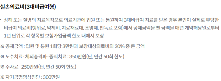 ※ 통원항목별 공제금액 : 3만원과 보장대상의료비의 30% 중 큰 금액