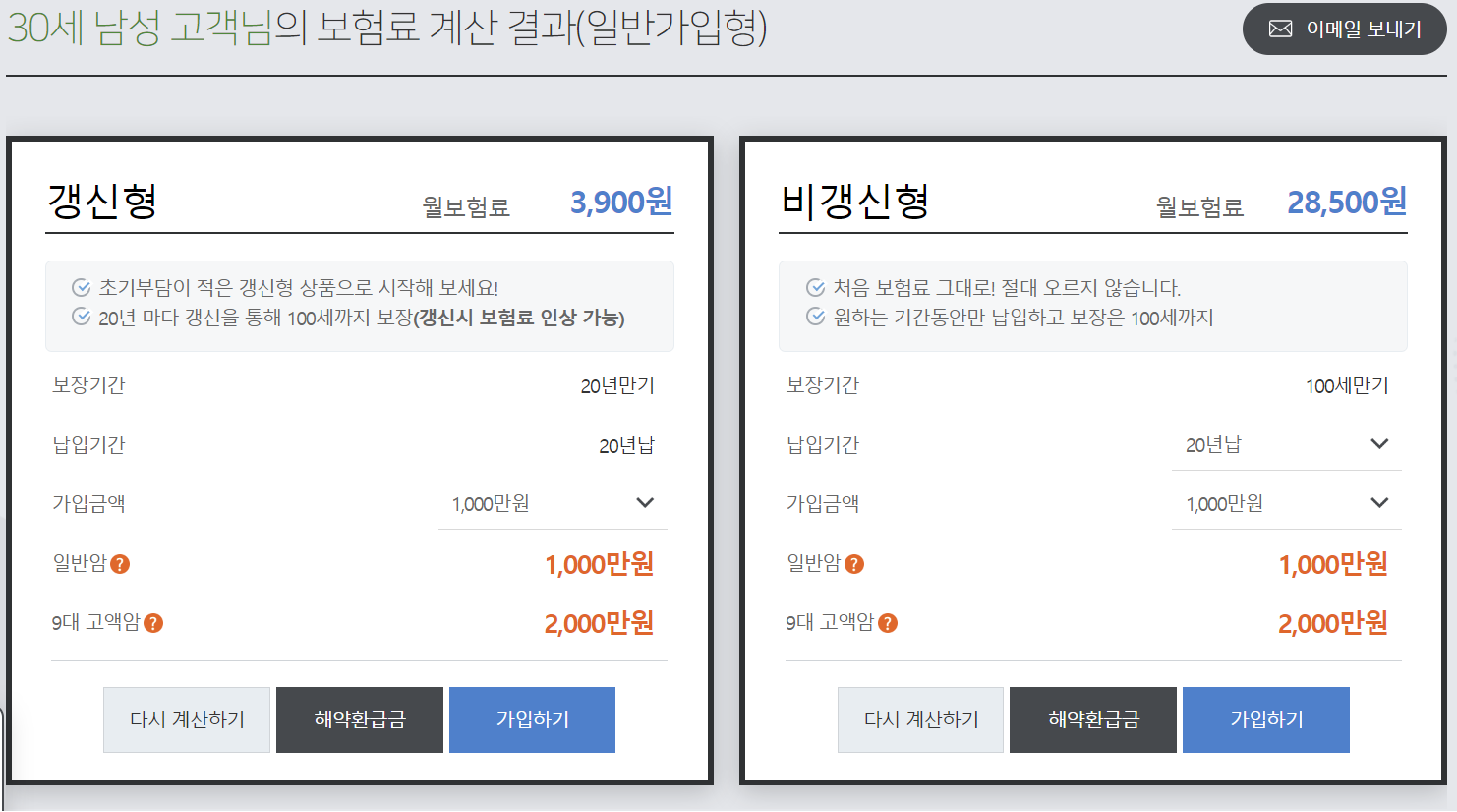 보험료는 쉽게 조회되며 보험료는 가입금액 납입기간, 나이 , 성별 등 여러 조건에 따라 달라지므로 직접 조회해보시는 것이 가장 좋습니다.