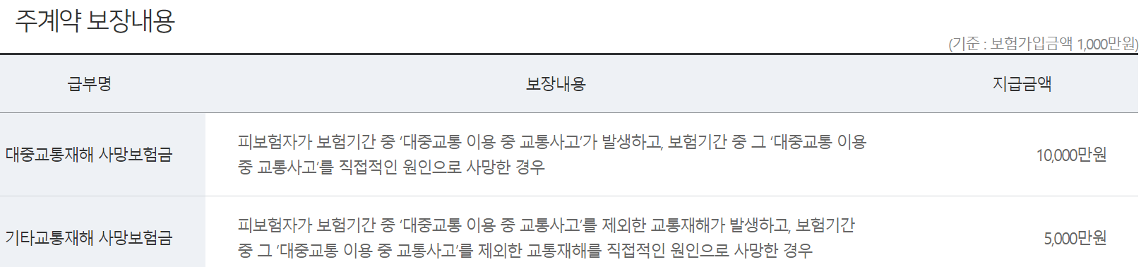 농협생명 NH올바른지구대중교통안전보험 보장내용