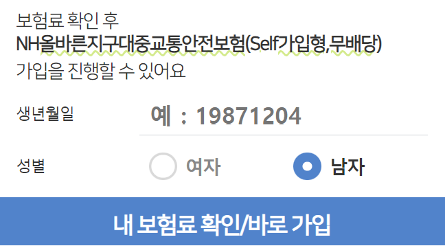 농협생명 NH올바른지구대중교통안전보험 보장내용 혜택 보험료 조회방법 알아보기