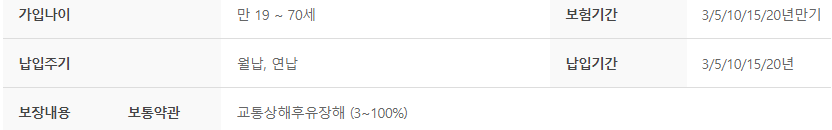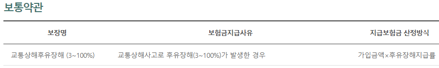 | 교통사고80%이상후유장해생활자금(1회한)(매월10년간지급) | 교통상해사고로 80% 이상 후유장해가 발생한 경우 | 가입금액×120회 (매월 10년간 지급) |