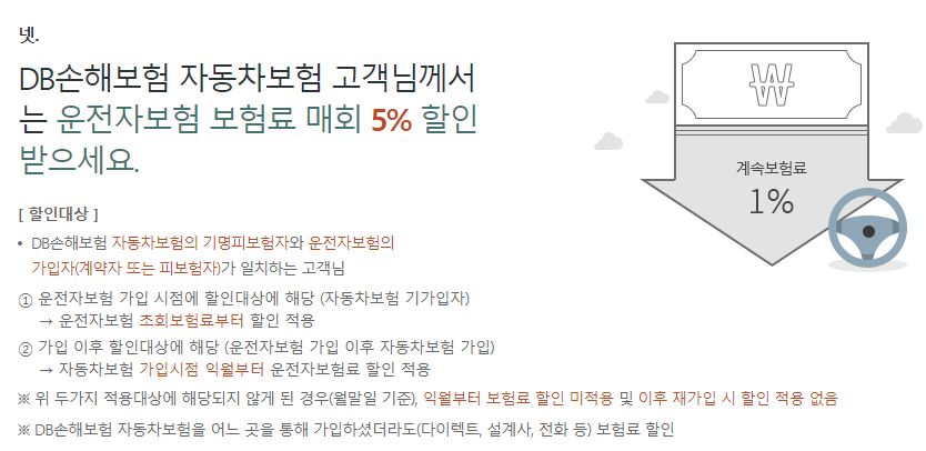 DB손해보험 운전자 다이렉트 운전자보험 보장내용 보험료 혜택 알아보기