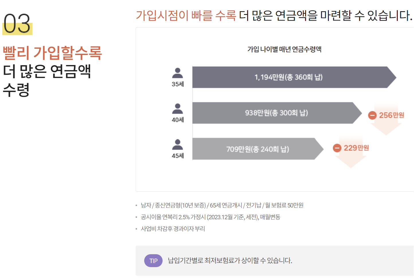 원하는 연금수령형태, 납입기간 등 여러 정보를 입력하시면 되며 나이, 성별 입력 시 아래와 같이 추천 조건도 있습니다.