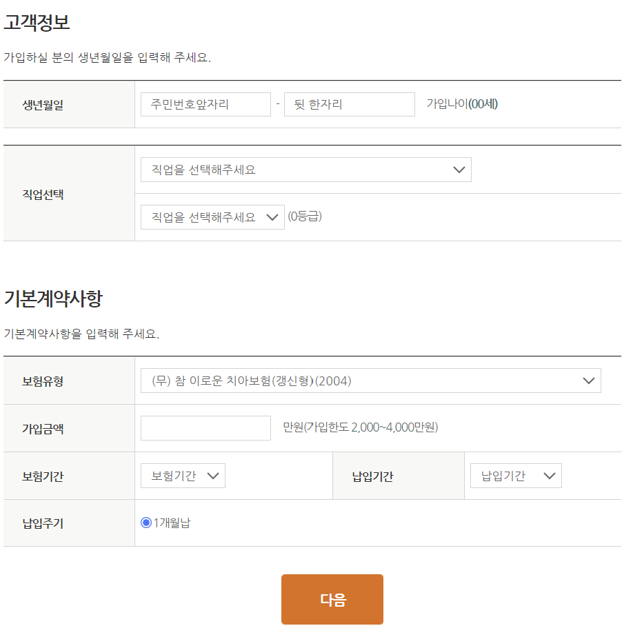 보험료 조회방법은 간단합니다. 먼저 고객 정보를 입력합니다.