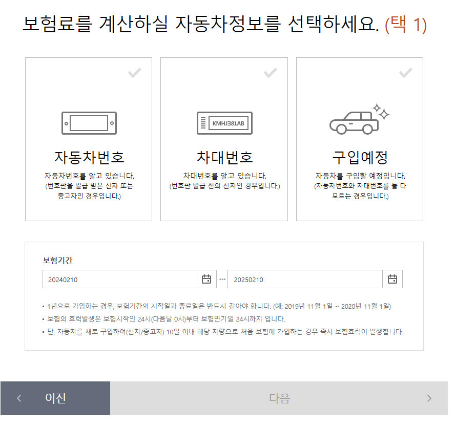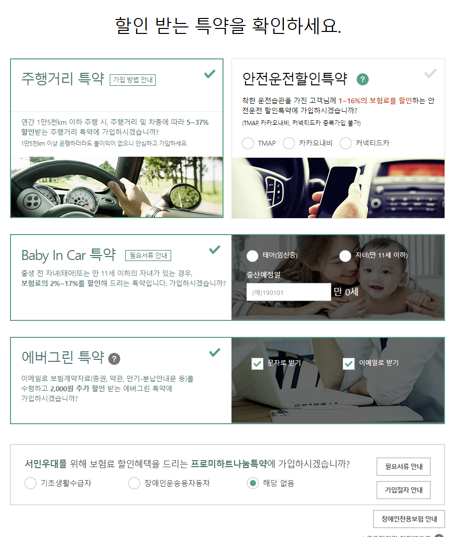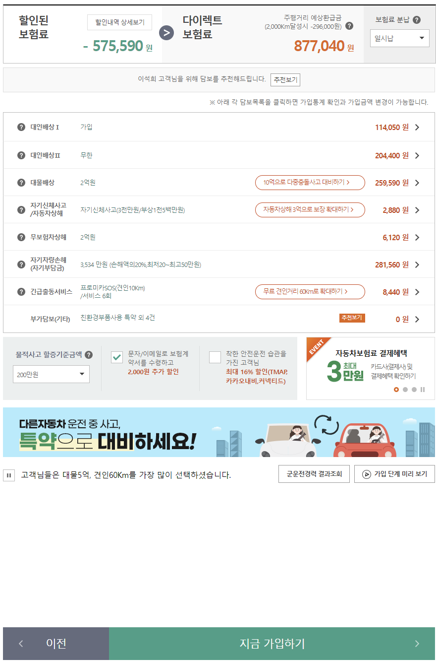 할인특약 정보를 입력합니다. 그럼 바로 다음과 같이 보험료가 계산됩니다.