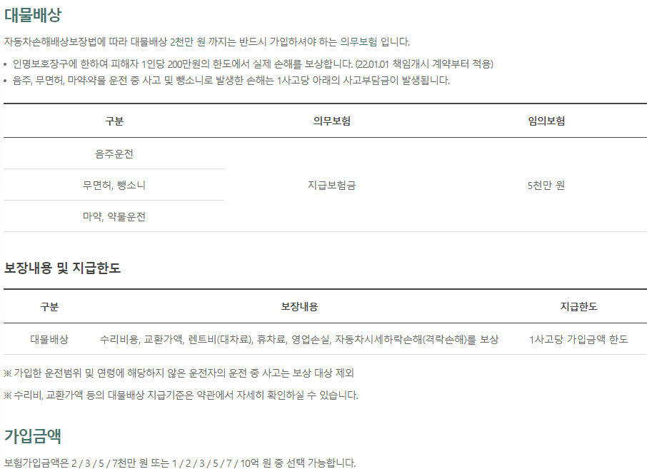 현대해상 다이렉트 자동차보험 특징 및 보장내용