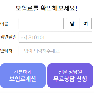 이름, 성별, 생년월일, 연락처 입력 후 간편하게 보험료 계산을 클릭합니다.