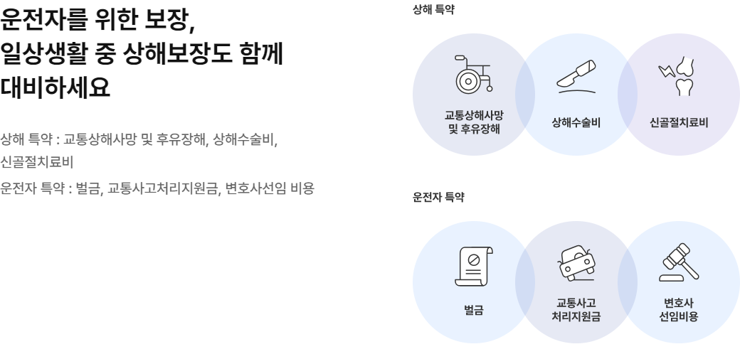| 운전자용 교통상해사망 | 교통사고로 사망 시 | 1억 원 |