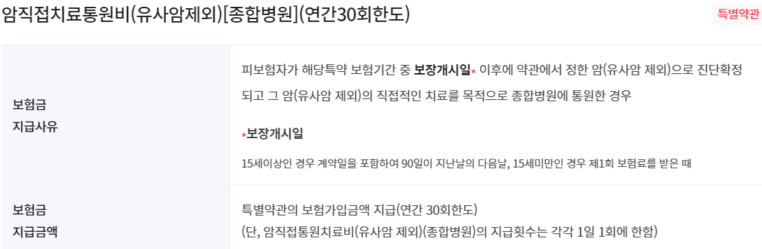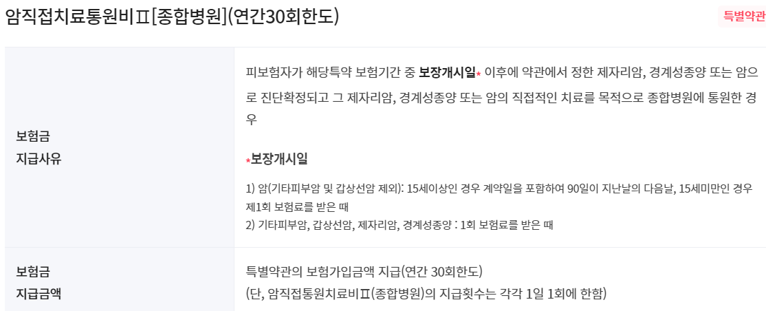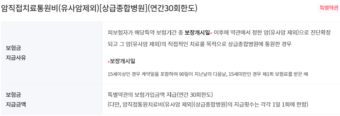 암직접치료통원비(유사암제외)[종합병원](연간30회한도)