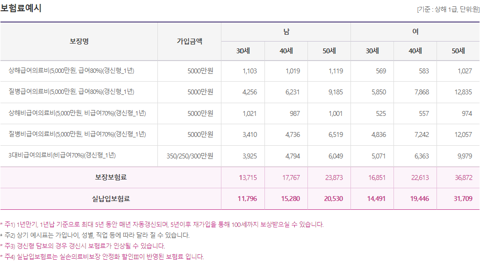 흥국화재 실손보험 보장내용 보험료 가입예시 실손보험 가입 주의사항