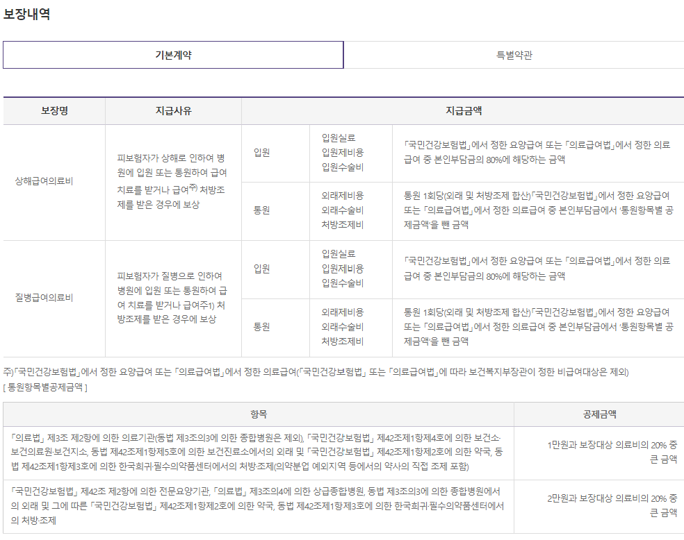 보다 자세한 보장 및 설명은 아래 약관 및 설명서를 참고 하시기 바랍니다.