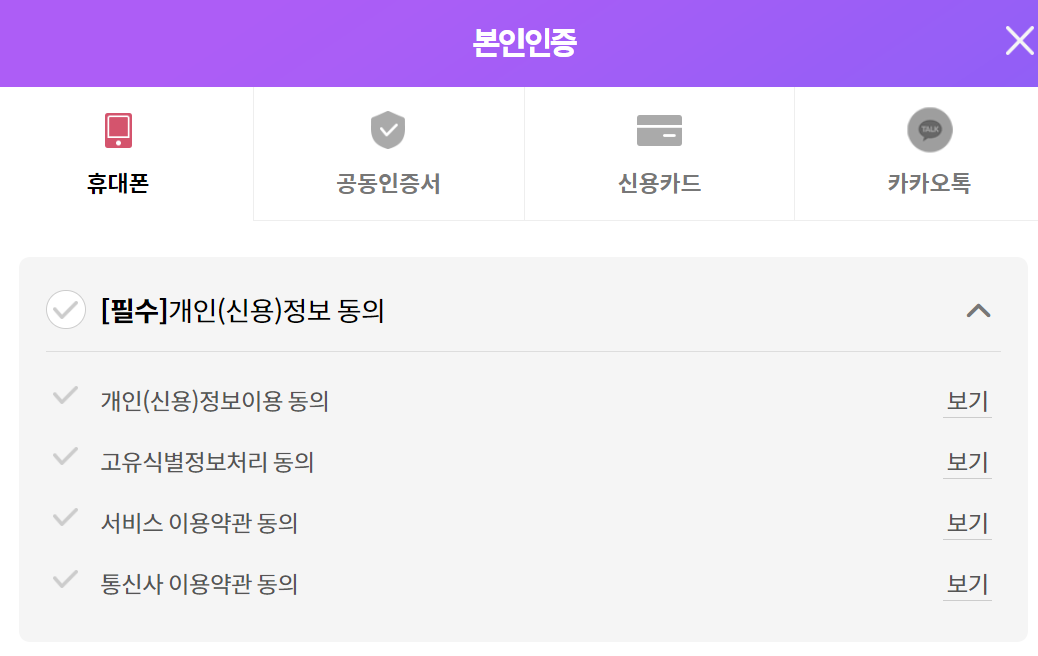 원하는 방식으로 본인인증을 합니다.