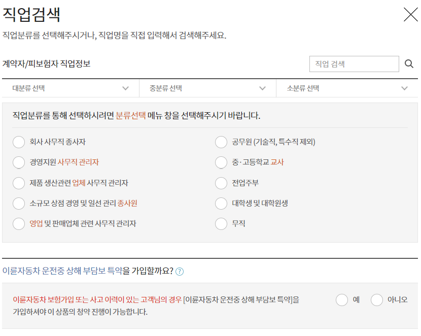 직업 정보를 입력합니다. 그럼 바로 보험료가 계산됩니다.