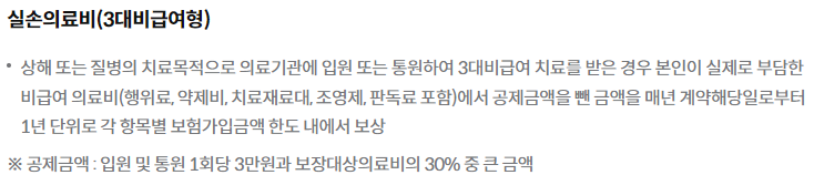 ※ 통원항목별 공제금액 : 3만원과 보장대상의료비의 30% 중 큰 금액
