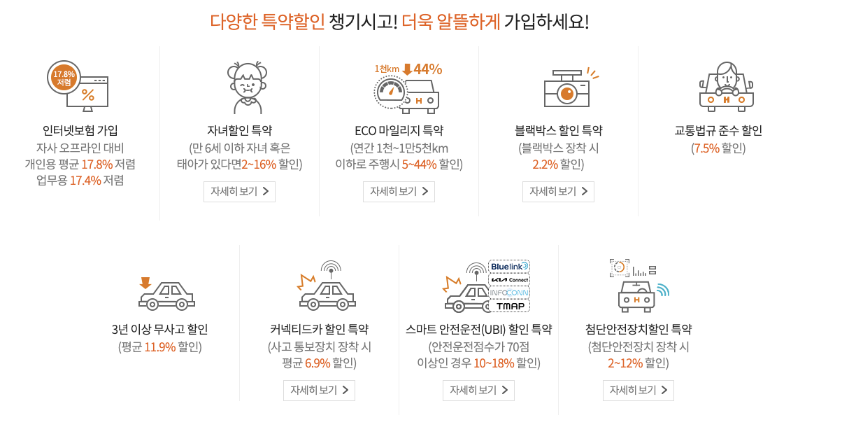 - 무사고 할인: 무사고 운전 경력에 따라 보험료를 할인받을 수 있습니다.