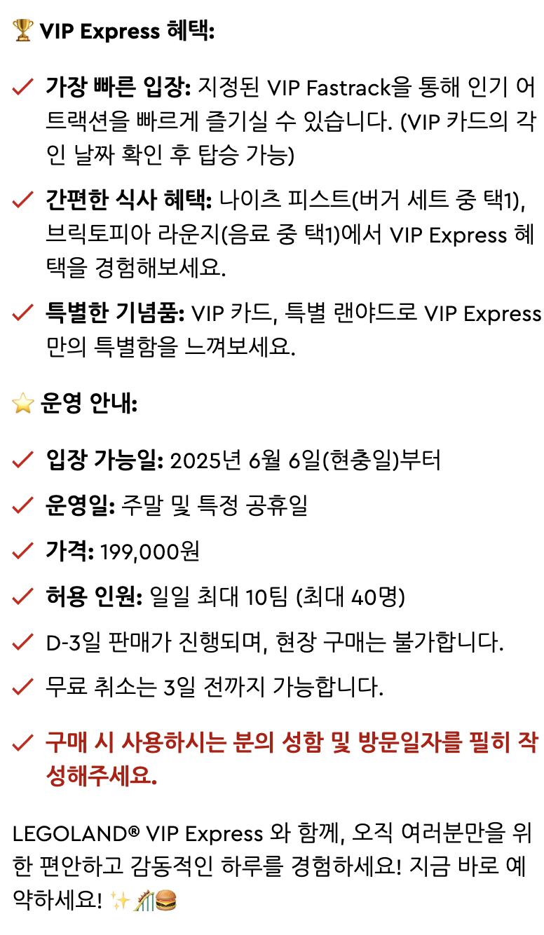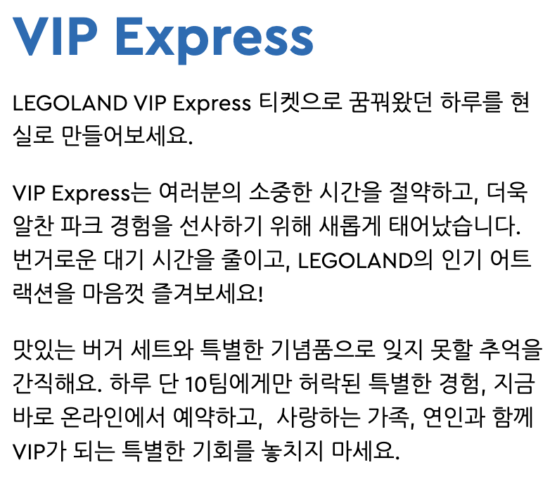 | 우선 입장 | 성수기에도 입장 대기 시간 단축 |