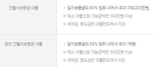 각각의 전세자금대출 조건은 아래 사진을 참고 하시길 바랍니다.