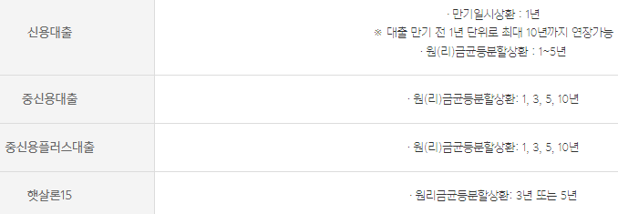 신청 고객에 따라 취급 가능한 대출 상품이 달라지며 공통 조건은 아래와 같습니다.
