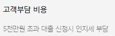 인지세란 대출 거래 신규 약정 시 내는 세금으로 5천만원 이하까지는 비과세이며 5천만원 초과부터 7만원, 1억원 초과금액은 15만원이며 각각 은행과 고객이 50%씩 부담합니다.